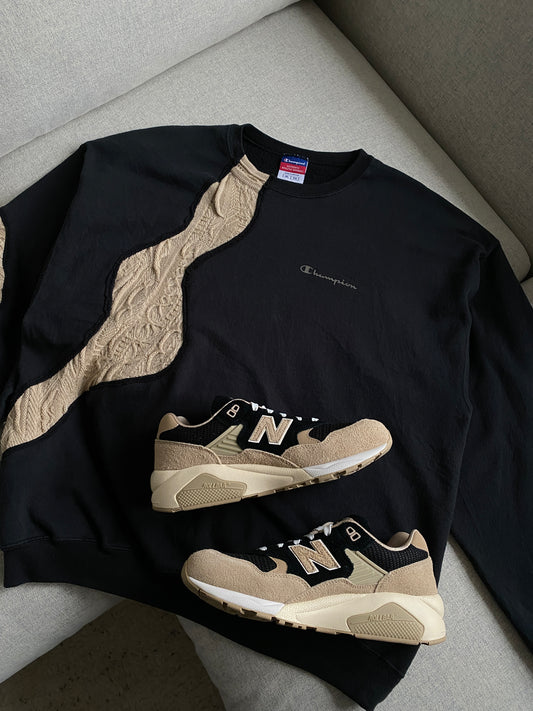 SPVNS STUDIOS: reworked vintage Champion x Carlo Colucci Style knit beige/black sweater (L)